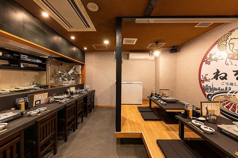 黒を基調とした暗めで落ち着いた内装は、上質な大人の隠れ家を演出します。お一人様やデートに最適なカウンター席、少人数での飲み会にぴったりのテーブル席を完備。特にテーブル席は、つなげれば10名様以上の大型宴会にも対応可能です。【全席喫煙可 札幌 すすきの 居酒屋 食べ放題 飲み放題 鍋 】