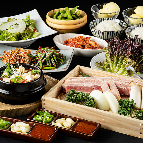 香ばしいサムギョプサルに焼き野菜、サラダ、デザートまで付いたコスパ抜群の2800円コース!