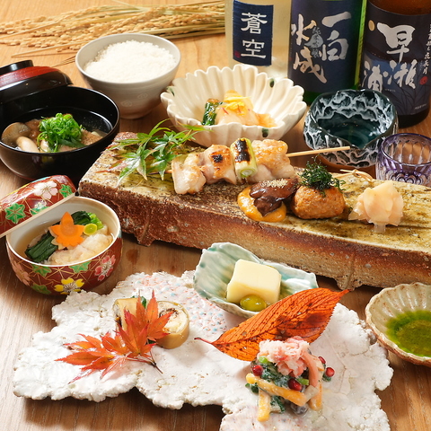 日本酒にこだわる店主厳選の銘酒と、旬の食材を使ったコースで、ゆったりとした時間をお過ごしください。