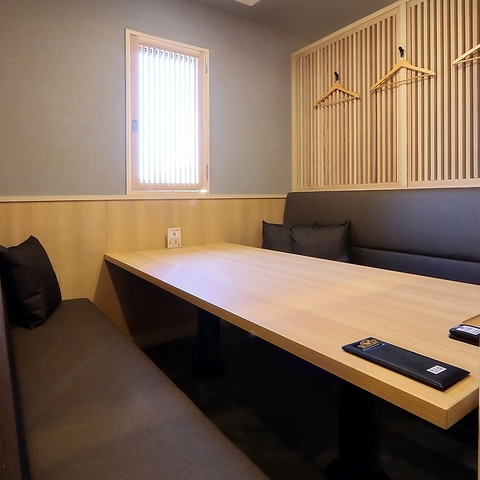 【居酒屋エリア】6名席 半個室として利用可。8名様でも十分に座れるほどゆったりとしたお席。ベンチシートでございます。