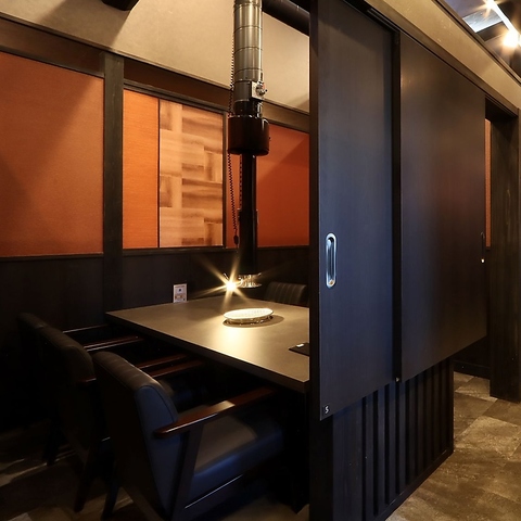 【焼肉エリア】椅子タイプの6名席 半個室として利用可。お好みですけどベンチシートのお席よりリッチな雰囲気に。