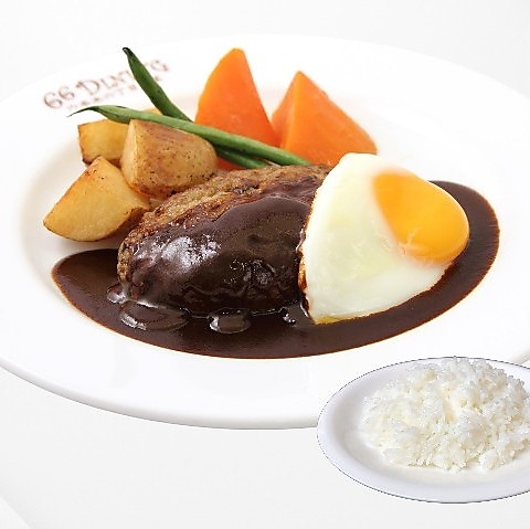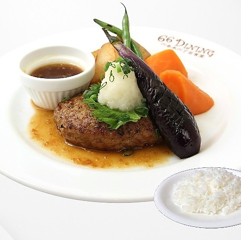 当店のハンバーグは、お肉の旨みがぎっしり詰まったジューシーな一品です。肉汁をしっかりと閉じ込め、外はこんがり、中はふっくらと焼き上げました。特製の本格デミグラスソースと和風おろしソースをご用意。出来立ての熱々を、ぜひご堪能ください!