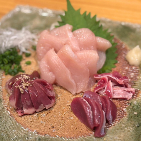 徹底した鮮度管理のもと仕入れた国産鶏を使用した、こだわりの鳥刺し盛り合わせ!しっとりとしたむね、旨みの濃いももなど、部位ごとの味わいと食感の違いを楽しめます。素材本来の美味しさをダイレクトに感じられ、日本酒や焼酎との相性も抜群!お酒のお供や、まずは味わっていただきたい一品です。