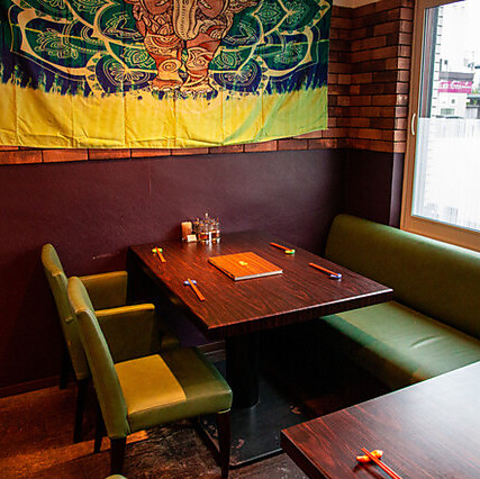 【お子様連れも歓迎】4人掛けのテーブル席で皆で盛り上がる時間を楽しみましょう☆エキゾチックな料理の数々が心を満たしてくれます!ご家族での集まりにピッタリ!