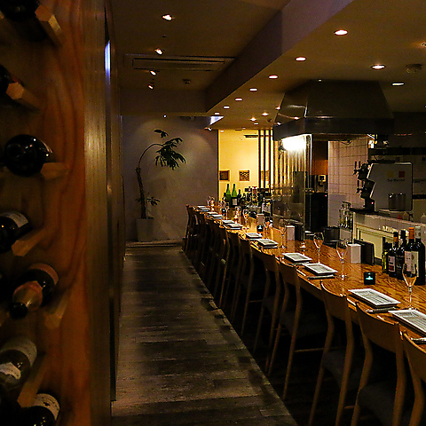 【カウンター】広々としたカウンターをL字で囲むことで楽しめる空間です。店内は自然と笑顔があふれるような雰囲気があり、ふっくり楽しめます。