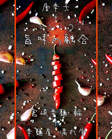 お昼は本場宮崎辛麺輪のラーメンと辛麺屋満丸堂オリジナル辛麺をお楽しみいただけます♪唐辛子の辛味とニンニクの旨味のバランスを追求しています。