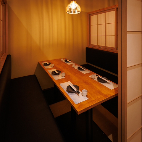 完全個室のお席で周りを気にせずにリラックスしたひとときをお過ごしいただけます。デートや大切な会話、仕事の打ち合わせにも最適な空間で、落ち着いた雰囲気の中でお料理を楽しんでいただけます。プライバシーを守りながら、静かな時間を満喫できるのが当店の特長。デザインにもこだわり、落ち着きのある空間でお客様をお迎えいたします。