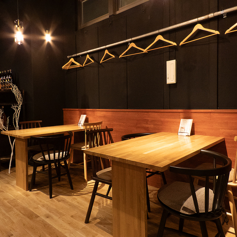 普段使いに最適なテーブル席は、少人数のお食事やお仲間との語らいの場にぴったりです。落ち着いた内装の中で、美味しい料理とお酒を囲み、リラックスした時間をお過ごしいただけます。