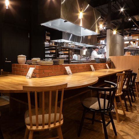 おしゃれな内装が自慢。料理風景が目の前で楽しめるカウンターやテーブル席で特別な時間をお過ごしください