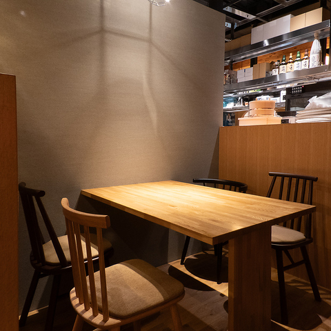 お客様の目の前で調理風景が見られるカウンター席を9席ご用意しております。出来立てのお料理を五感でお楽しみいただけるライブ感が魅力です。お一人様や、カップルでのご利用に最適です。店主との会話を楽しみながら、ゆったりとした時間をお過ごしください。おしゃれで綺麗な内装は、デートにもおすすめです。
