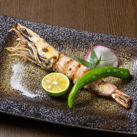 パリッと香ばしく焼き上げた、見た目も豪華な「大海老の串焼き」。熟練の料理人が絶妙な火入れで、海老本来の甘みとぷりぷりの食感を最大限に引き出します。芳醇な香りが食欲をそそる一皿は、ワインやビールとの相性も良い。五感で味わう至福の逸品をご堪能ください。
