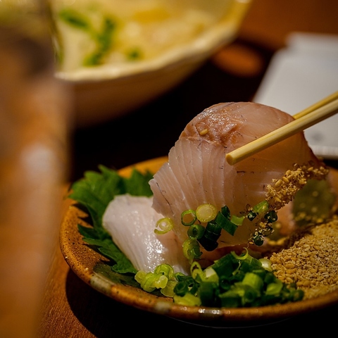 活きの良い新鮮なカンパチを特製の甘い胡麻醤油で和えた福岡名物です◎新鮮でぷりぷりなカンパチと芳ばしい胡麻の風味が絶妙に絡み合います。熱々のご飯に乗せて、最後はお茶漬けにするのもおすすめです♪日本酒や焼酎とご一緒にお楽しみください。