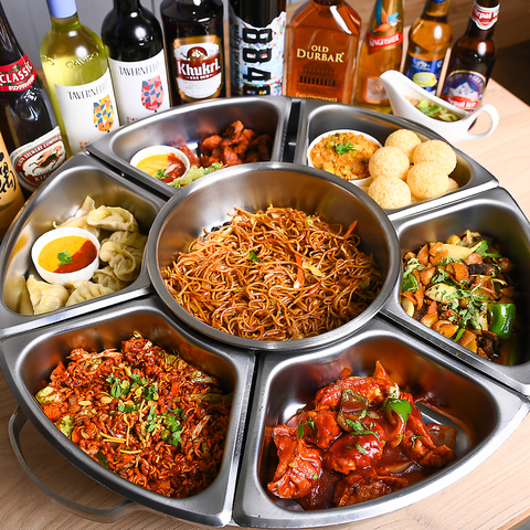 グループで楽しめられるカトマンズヴィヤンジャンのおすすめサービス品セット。カトマンズ回転プラッターは3名様~のご注文になります。お一人様当たりの価格は@1167円(税込)になっております。