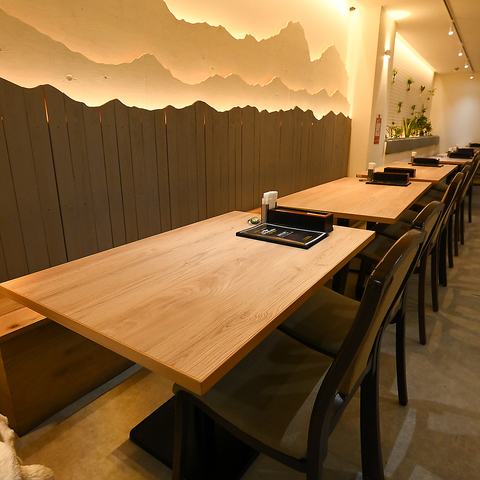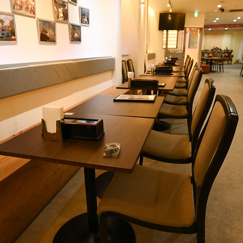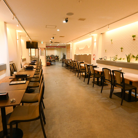 アットホームな雰囲気の店内に、ゆったりとしたテーブル席を多数ご用意しております。少人数でのプライベートな食事から、大人数での宴会まで幅広いシーンに対応可能です。異国情緒あふれる空間で、落ち着いてお食事をお楽しみいただけます。お子様連れのファミリーも歓迎です。