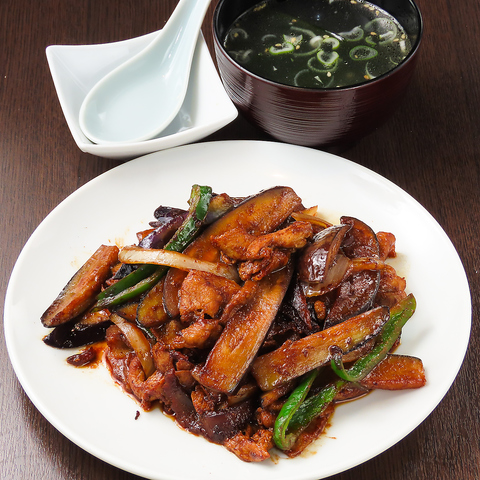 とろっとした茄子に豆板醤のコクの深い麻婆味噌を合わせたご飯が進む一皿。旨味、辛味のバランスがよく、食欲をそそります!