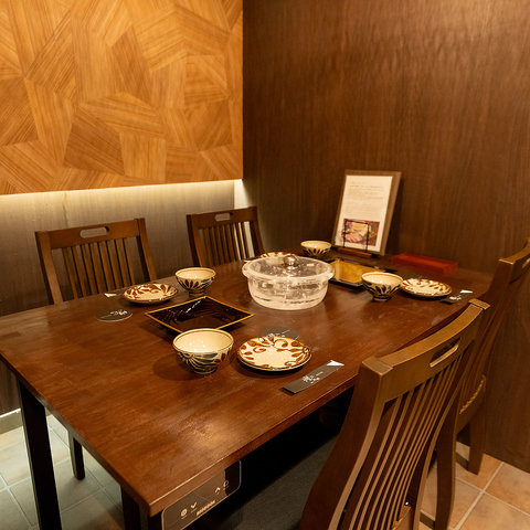店内は4テーブルと1つの個室、カップルシートをご用意しております。暖かいライトに照らされた店内は、落ち着いた雰囲気で語らいながらしゃぶしゃぶを楽しむのにぴったりの空間。美味しい料理と楽しい会話で特別なひと時をお過ごしください!駅からも近く、お仕事帰りにもお気軽に利用くださいませ。