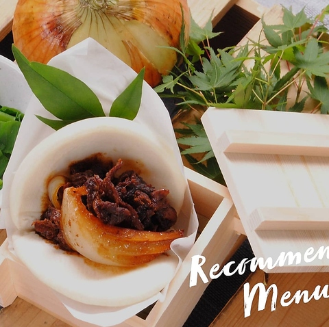 台湾の伝統料理・刈包(カーポウ)。24時間漬けた豚肉と野菜を蒸し焼きにしました。生地に包んでお好みのスタイルでどうぞ。