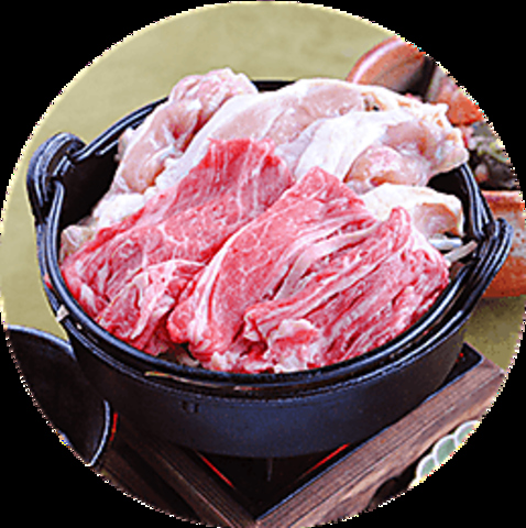【コース内容】 京都産牛と京丹波鶏を使用し、たっぷりのお野菜を詰め込み、特製の割り下で召し上がっていただくオプションメニューです。☆飲み放題を追加することも出来ます。