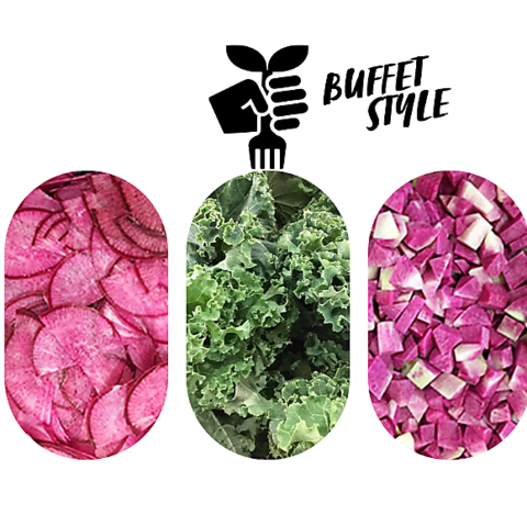 農家直送の新鮮野菜が並ぶ「畑バー」。今日ここでしか味わえない、KAMOならではの美味しさを心ゆくまでご堪能ください。
