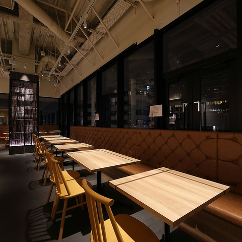 広々としたモダンなテーブル席で、ゆったりとした時間をお楽しみいただけます。快適な空間です。