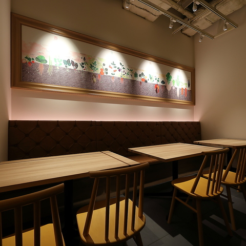 片側がソファーのテーブル席を完備。ゆったりとした空間で、リラックスしながらお食事を楽しめます。