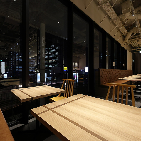 広々としたモダンなテーブル席で、ゆったりとした時間をお楽しみいただけます。快適な空間です。