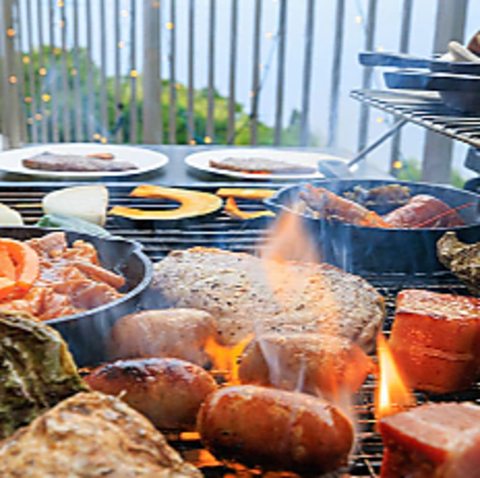 肉の旨み、海老の食感、牡蠣の濃厚さを旬野菜と共に。香ばしい香り漂う贅沢BBQを♪