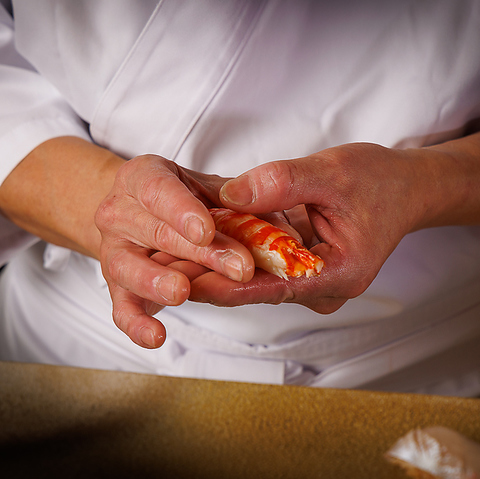 カウンター席に座ると、職人が目の前で繰り広げる巧みな手さばきが楽しめます。職人との会話を交えながら、食材の魅力を最大限に引き出したお鮨をお楽しみください。