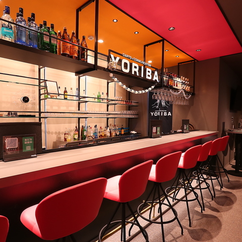 カウンター席もあるYORIBAは、一人でも気軽に立ち寄れるダーツBAR。少人数利用や深夜の一杯にも最適で、飲み放題プランと落ち着いた照明でゆったり楽しめます。