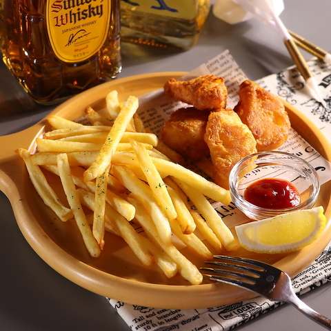 ジューシーな フィッシュ と カリッと揚げたポテトフライ の定番コンビ。香ばしく仕上げた唐揚げはお酒との相性抜群で、ポテトのホクホク感と一緒に楽しめる一皿です。仲間とシェアして、ダーツバーでのひとときを盛り上げる人気メニューです。