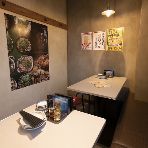 【ほっとするひとときを◎】焼きたて餃子を囲み、会話も箸も止まらない楽しいひとときを過ごせるテーブル席。さらに、もつ鍋の湯気に包まれた温かみのある空間で、気取らずゆったりとお寛ぎいただけます。仲間との語らいや、ほっと一息つきたい時にもぴったりです♪お腹も心も満たされる、楽しいひとときをご堪能ください。