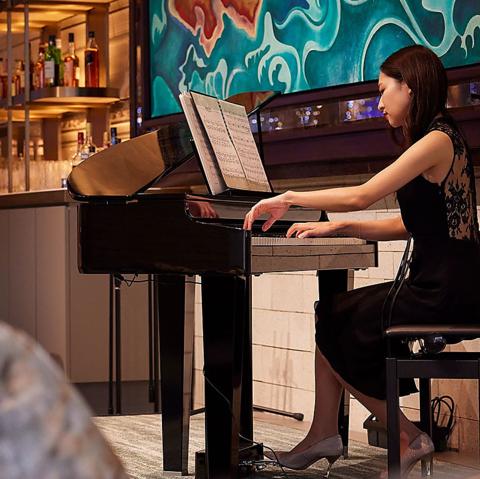 ゆるやかに店内に響き渡るライブミュージック!アフタヌーンティーやコーヒーを楽しめるホテルラウンジです