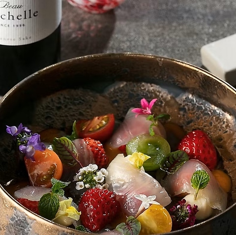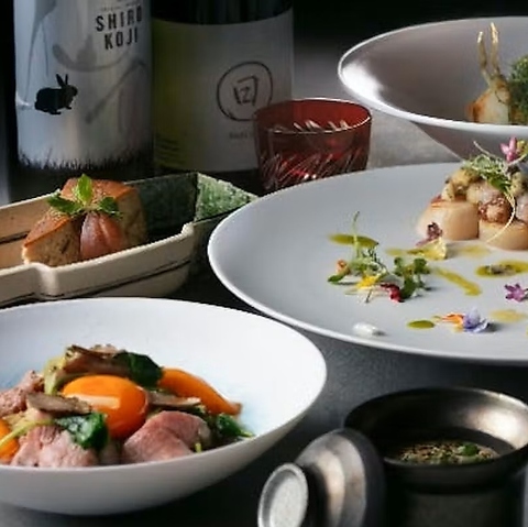 一切の妥協なく、食材の旬にこだわり、その持ち味を引き出します。日本の四季を感じさせる食材をふんだんに使い、シェフの自由な感性で仕立てた一皿は、ジャンルに捕らわれない創造性に満ちています。日本酒との相性を突き詰めた、当店でしか味わえない逸品をぜひご賞味ください。一口ごとに新たな発見がある、心に残る特別料理をご提供します。