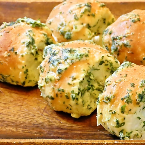程よくニンニクが効いた当店オリジナルのパン。お肉やお野菜との相性も抜群。