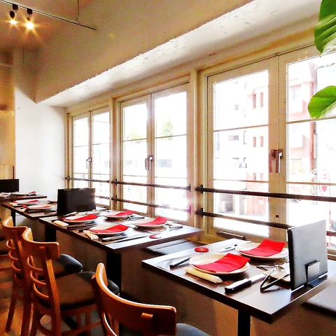 外苑前の街並みを感じられる窓際席。デートや記念日など、ゆっくり過ごしたいお食事におすすめです。