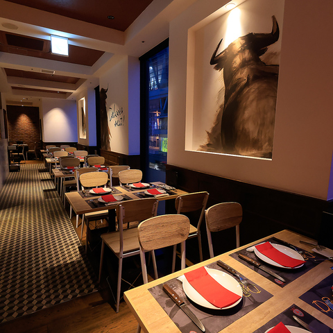 【団体様スペース最大54名様ご利用OK】シュラスコ&ビアサーバーを個室でお楽しみ下さい。小規模の宴会/職場の同僚と/お友達と/誕生日会/11月12月の忘年会などの利用に重宝します。目の前で提供するシュラスコ、樽生ビアサーバーは盛り上がること間違いなし。