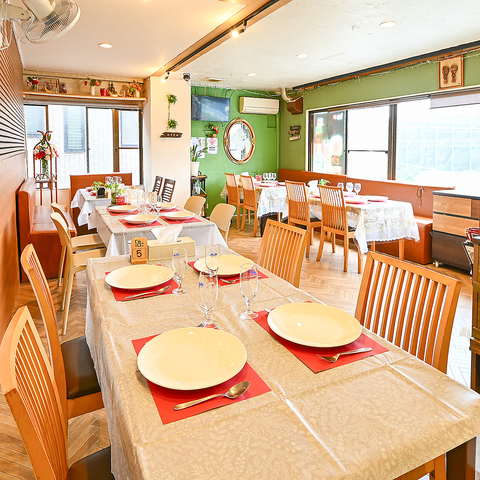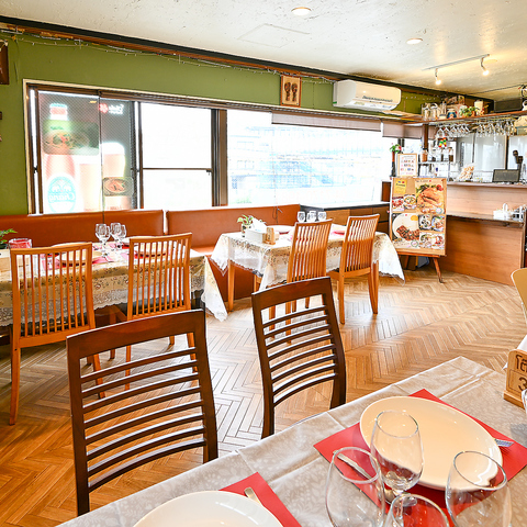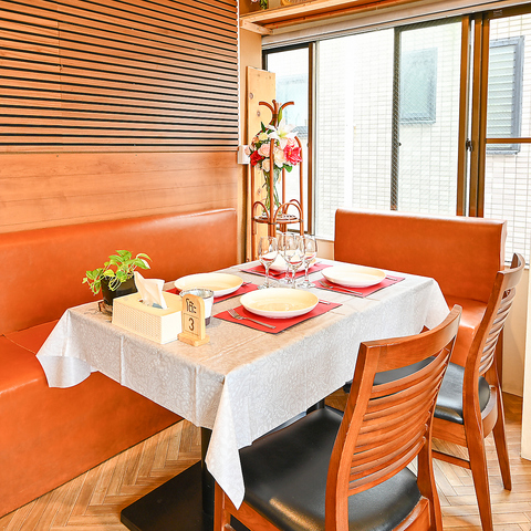 ゆったり座れる4人用テーブル席をご用意。友人や家族とのランチやディナーに最適で、会話も楽しみながら食事ができる落ち着いた空間です。隣席との間隔もゆとりがあり、周りを気にせずリラックスして過ごせます。テーブル席は予約も可能で、快適な席で、美味しい料理と楽しい時間を満喫できます。