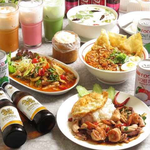 本場タイの味を楽しめるコース料理をご用意。前菜からデザートまで、香り高いハーブやスパイスをふんだんに使った多彩な料理が揃います。グリーンカレーやトムヤムクン、パッタイなど人気メニューを一度に味わえる満足度抜群の内容で、宴会や記念日、女子会にもぴったり。落ち着いた空間でタイの魅力を存分に堪能できます。