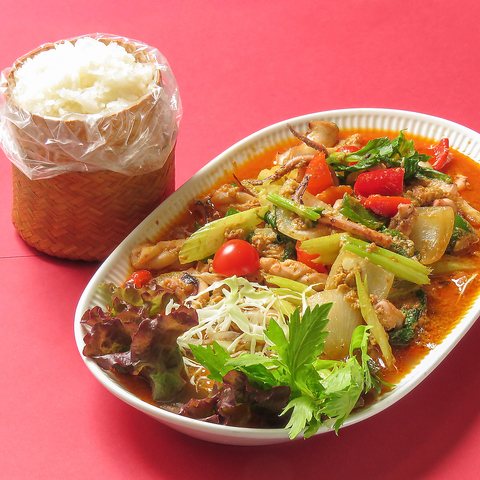 濃厚でクリーミーな味わいが魅力のパッポンカレー。ココナッツミルクのまろやかさとスパイスの香りが絶妙に調和し、ほどよい辛さがクセになる人気の一品です。新鮮なエビやシーフードをふんだんに使用し、旨みたっぷり。ご飯との相性も抜群で、一口ごとに広がる深いコクと香りを堪能できます。初めての方にもおすすめ◎