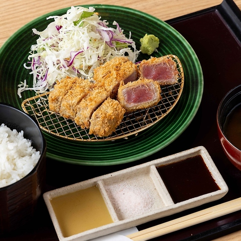 上質な牛肉を絶妙な火入れで揚げ、衣はサクッと、中はやわらかくジューシー。特製ソースが旨みをさらに引き立てます。ご飯と味噌汁はおかわり自由、とろろ付きで後味まで上品な満足を。