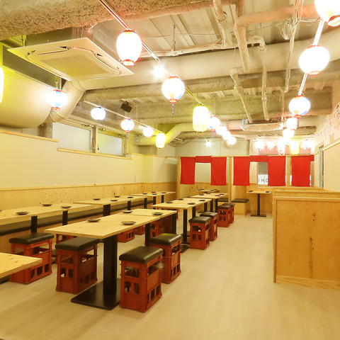 気取らない雰囲気で、気の合う仲間とリラックスした時間を過ごせる、カジュアルに楽しむ大衆酒場♪大小のテーブル席を用意しておりますので、最大68名様までの大人数でご宴会をお楽しみいただけます!まずはご相談ください!
