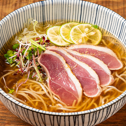 お酒を飲める蕎麦屋をテーマに、大阪の特産品河内鴨を使った逸品や、蕎麦屋ならではの料理をご用意。「【名物】 炭の香り すき焼きみたいに食べる蕎麦」など、炭の香りとともに蕎麦を楽しめます。「自家製焼き蕎麦味噌」や数量限定の「希少三種盛り(生肝・ズリ刺身・ササミ造り)1705円(税込)」といった当店自慢の料理を召し上がれ。