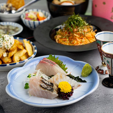 季節の食材をふんだんに取り入れた、市場直送のこだわり鮮魚をご用意。刺身や焼き魚など素材の旨みを活かした海鮮料理と相性抜群の日本酒や焼酎も、豊富に取り揃えております。