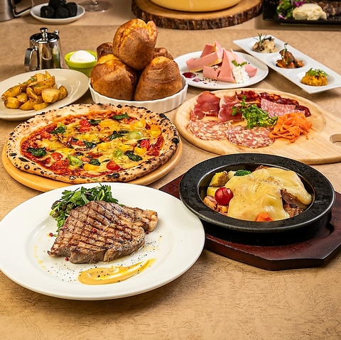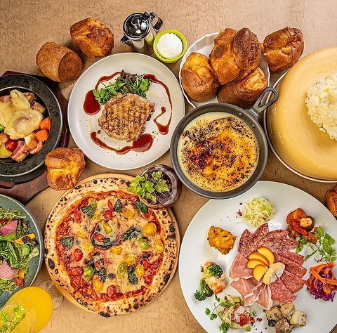とろけるラクレットチーズと、64℃でじっくり仕上げたローストポークが主役の贅沢コース。名物の自家製POP OVERが【食べ放題】。メープル&塩ホイップを添えて、何個でもお好きなだけお楽しみいただけます。前菜からデザートまで豪華8品に、飲み放題もセットで大満足間違いなし。