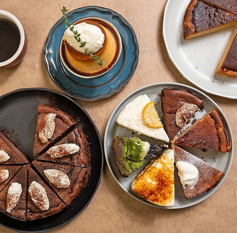 こだわりチーズケーキは6種類♪そのほかプリンや飲めるチーズケーキなど食後やゆったりカフェタイムに◎