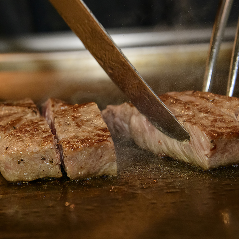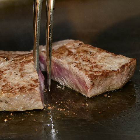 お店の主役のひとつが、素材の旨みを最大限に引き出したお肉料理です!オーダーが入ってから一枚一枚、鉄板でじっくりと焼き上げるスタイル。肉の表面は香ばしく、中はしっとりとジューシーに。火加減ひとつにもシェフの技が光ります☆