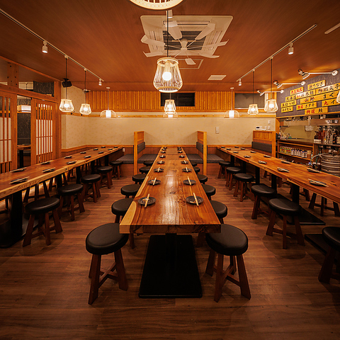 温かな照明と統一感のある木目調空間。仲間や同僚との集まりにも最適で話が弾む心地よい時間を過ごせます。