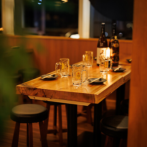 木のぬくもりを感じるテーブル席は、気の合う仲間との食事や軽い飲み会に最適。照明の柔らかな光が料理を引き立て、自然と会話も弾みます。ビールを片手に語らう時間や、会社帰りの一杯にもぴったり。落ち着いた雰囲気の中で、美味しい料理とお酒を楽しみながら、心安らぐひとときをお過ごしください。