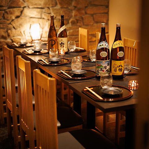 木の温もりが心地よい和モダンな個室は、扉を閉めれば自分たちだけの静かな空間。周囲を気にせず会話を楽しめ、時間を忘れてくつろげます。接待やデートはもちろん、親しい仲間との語らいにもぴったり。柔らかな灯りが料理を美しく照らし、穏やかな空気が流れる上質なひととき。落ち着いた夜を過ごしたい方におすすめです。