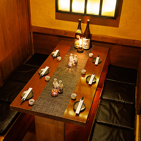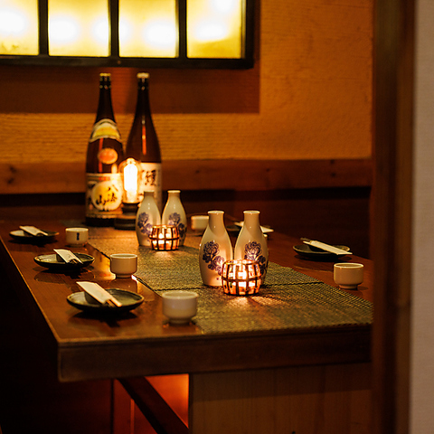 程よい距離感で話しやすい少人数向けの個室。気の合う仲間や恋人と、旬の海鮮や焼き鳥を囲んで過ごせます。